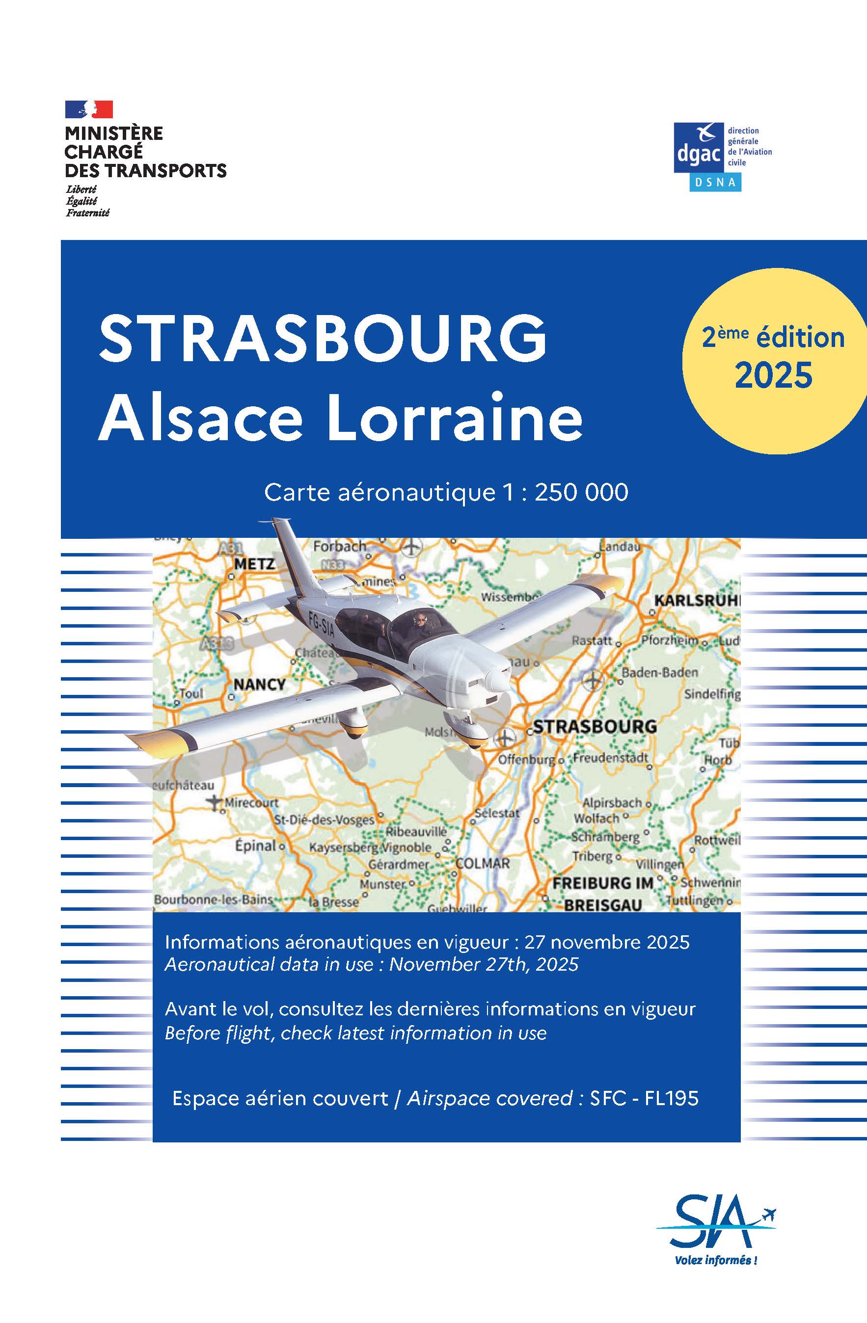 Cette carte aéronautique appelée STRASBOURG ALSACE LORRAINE couvre une zone rectangulaire délimitée